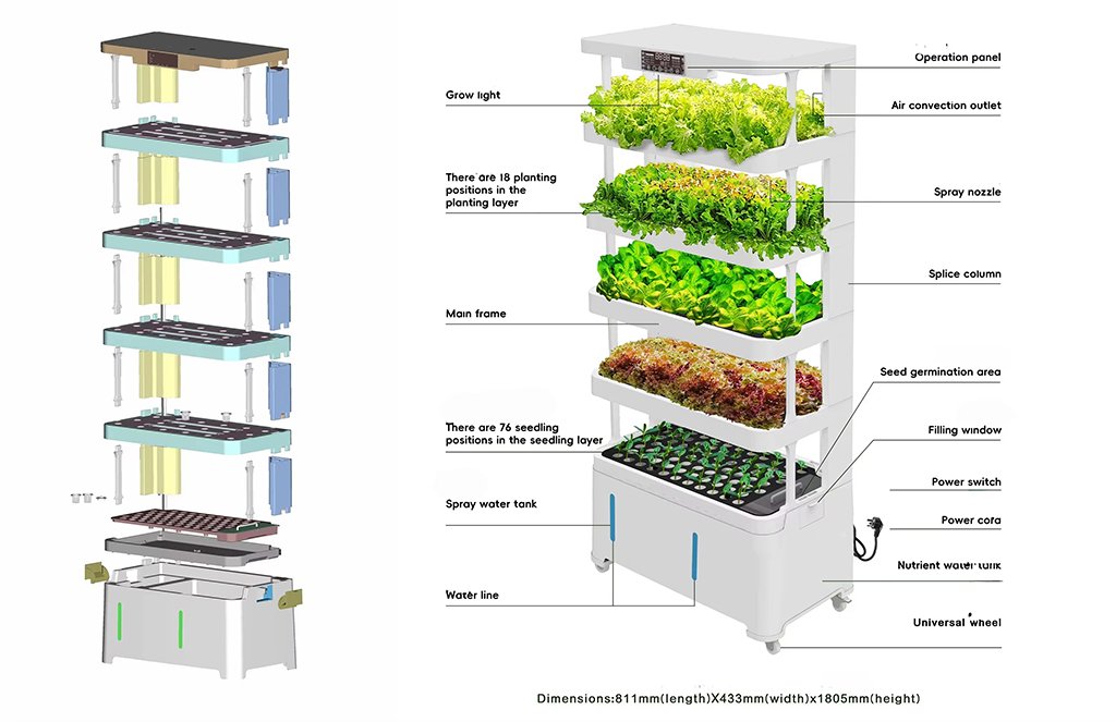 Automation: Fully automated control panel simplifies gardening by managing water cycles, lighting, airflow, and mist spray—eliminating guesswork.